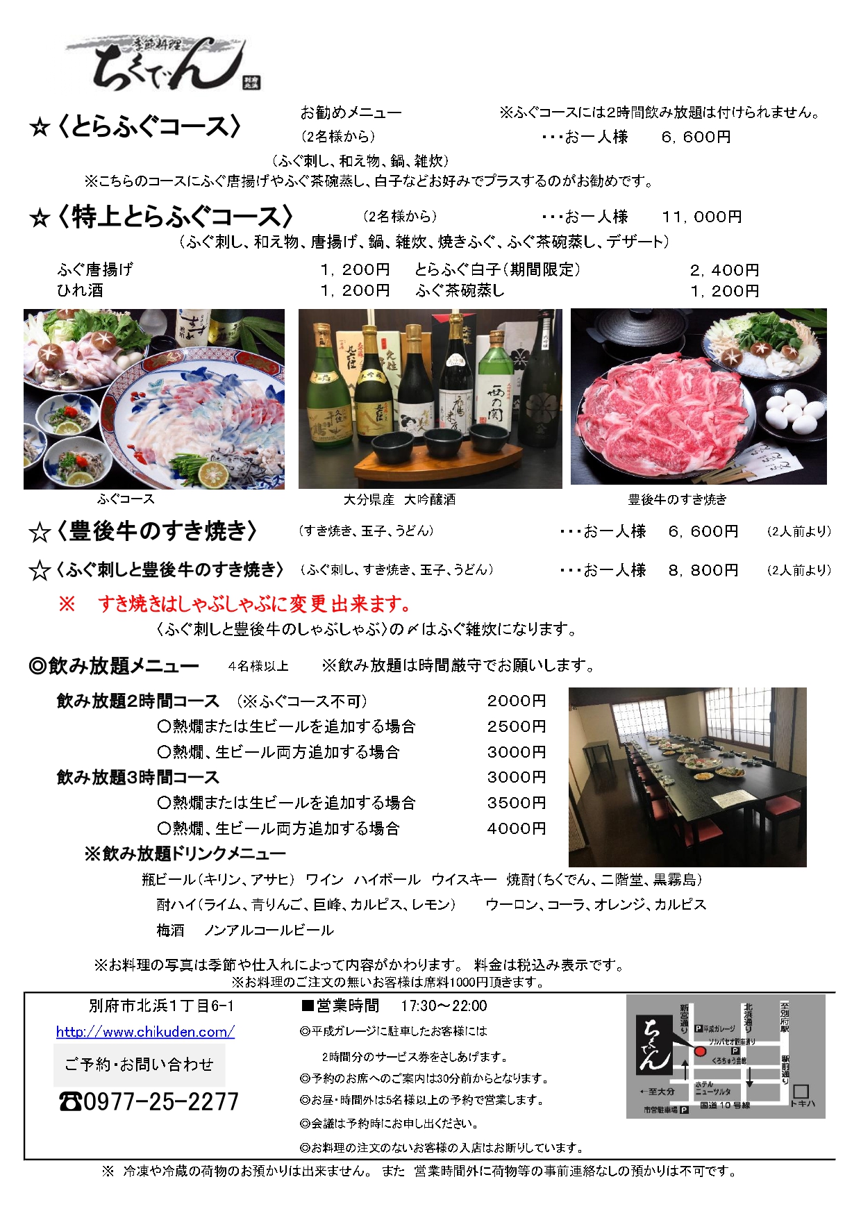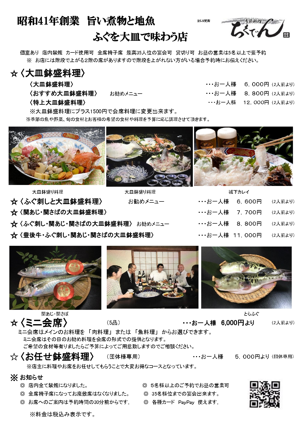 大切な方のとのお夕食、ご宴会の席に 季節料理 ちくでんを是非、ご利用下さい。