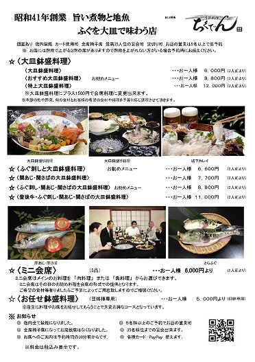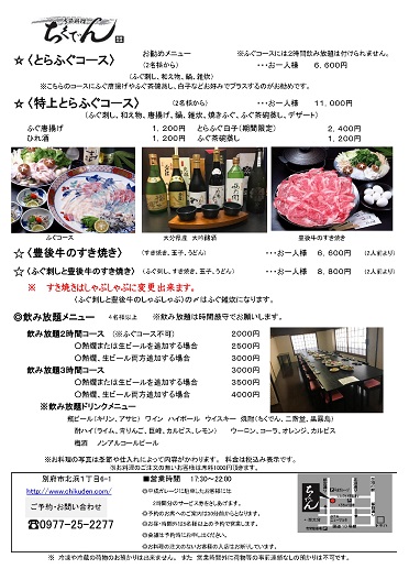 その他、大分名物のとり天やりゅうきゅう等ご要望によりお造りしますのでお気軽にお申し付けください。